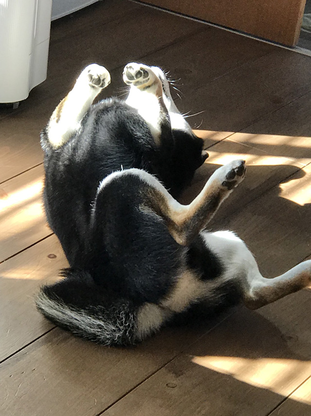 これは「へそ天」といって、ご主人への服従の表れ、究極のリラックスなど言われていましたが、